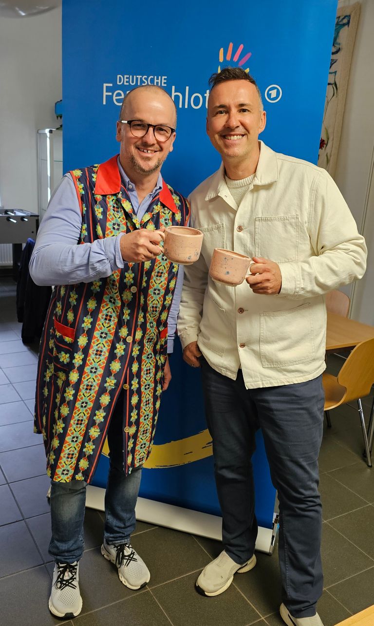 Silvio Zschage vom "Guten Morgen Sachsen" Radio beim MDR trinkt seinen Kaffee aus Tassen von Quagürk. Holen auch sie sich eine der begehrten Einzelstücke!